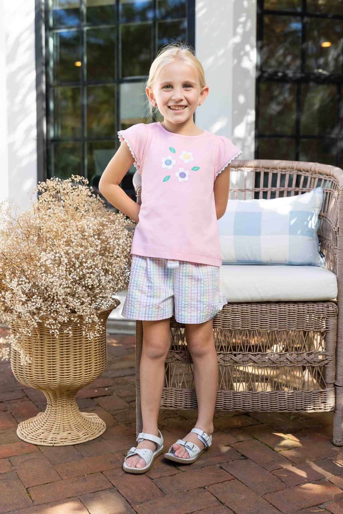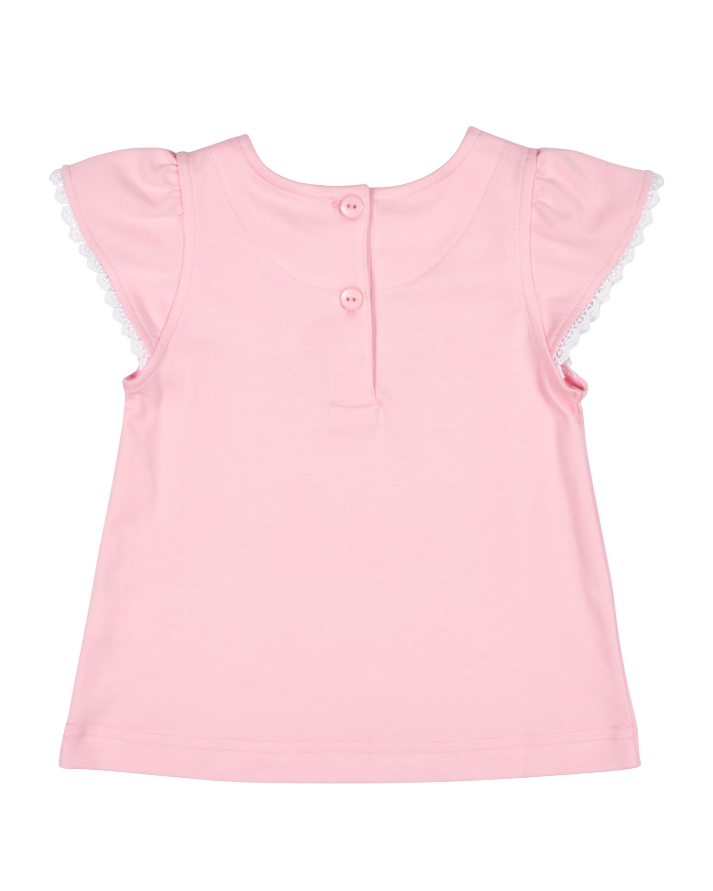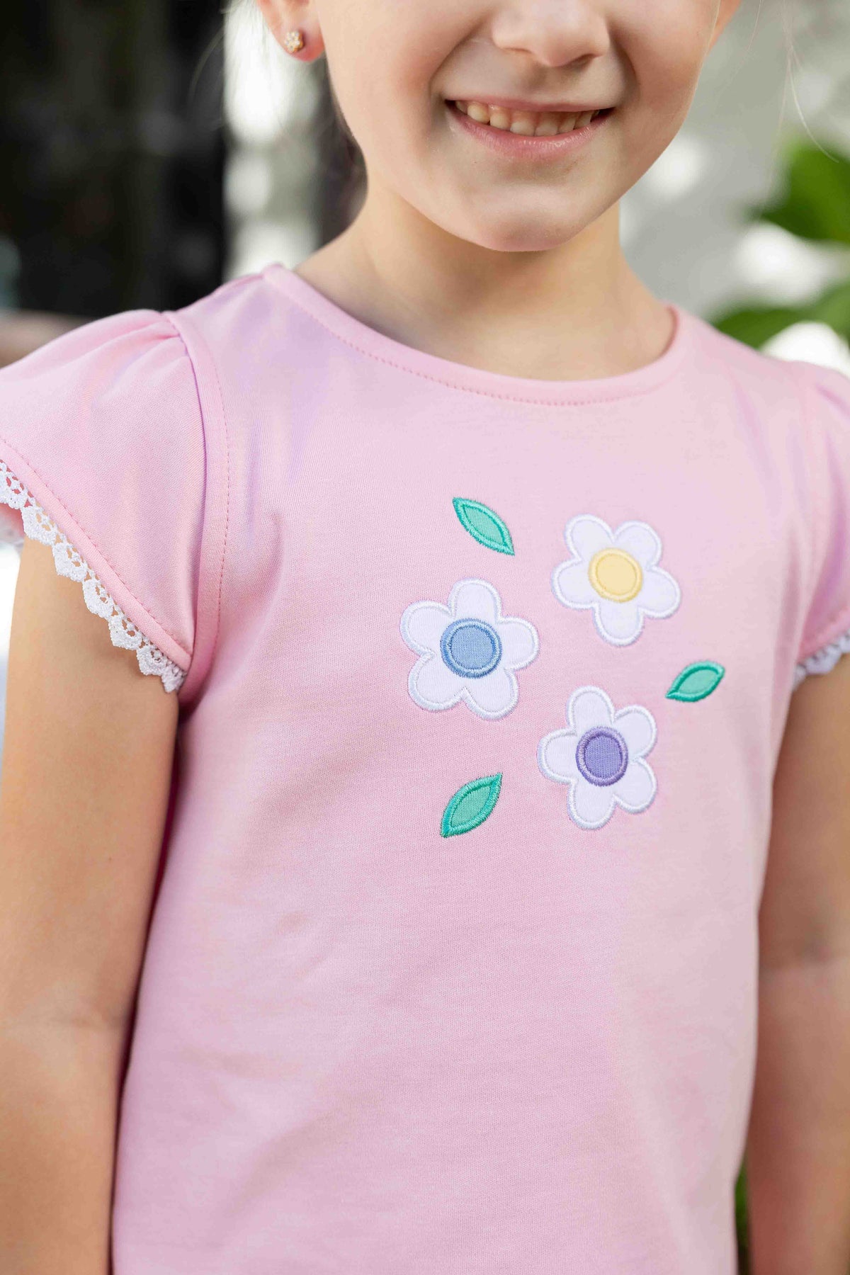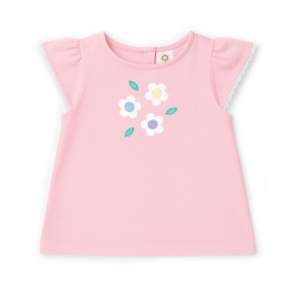 Regular price $64.00Sweet and sunny, this pink interlock knit top is crafted from soft 100% cotton for cool, all-day comfort. Appliqué flowers bloom across the front chest, adding cheerful color and playful charm.