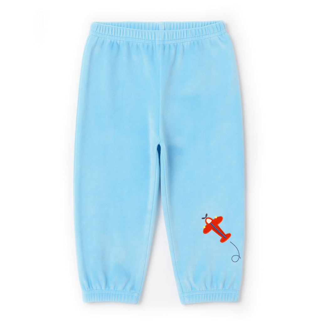 Regular price $52.00Cozy and playful, these jogger pants are crafted from soft blue velour with a touch of stretch for all-day comfort. A bright appliqué airplane on the leg adds a whimsical detail that pairs perfectly with seasonal tops and sweaters.