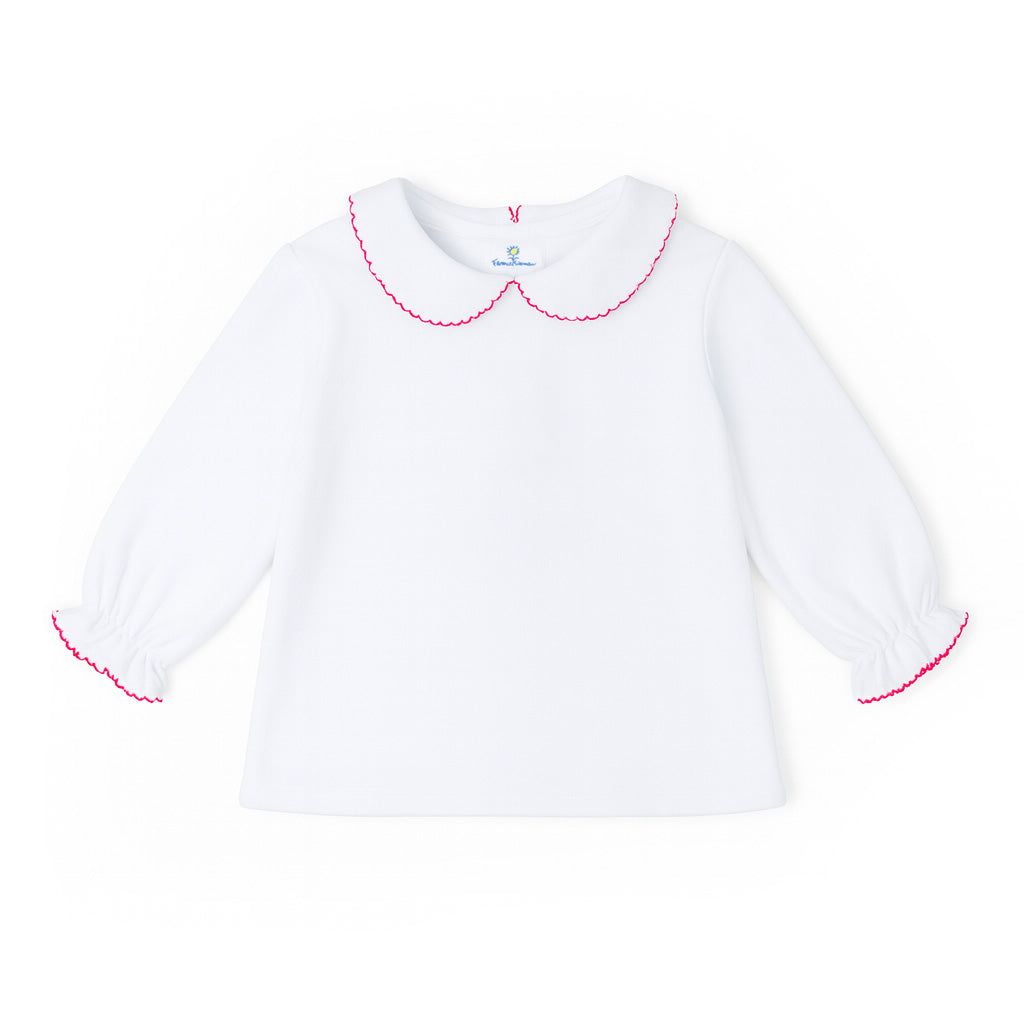 Knit Long Sleeve Blouse With Fuchsia Picot