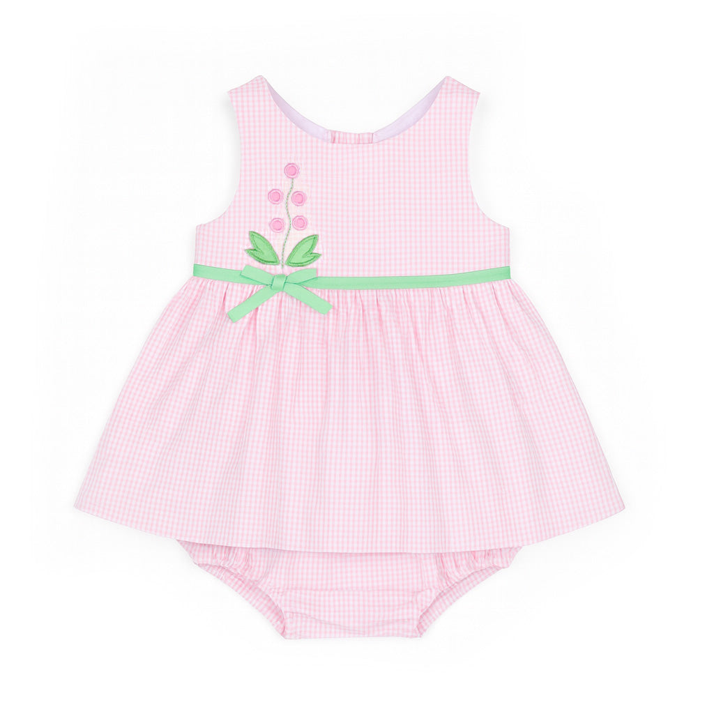 Our personalization team will make the best choice for each size and style. For the cardigans, embroidery is placed in the upper left side of the chest of the garment. For dresses, embroidery is centered on teh bib.