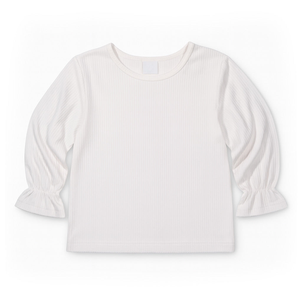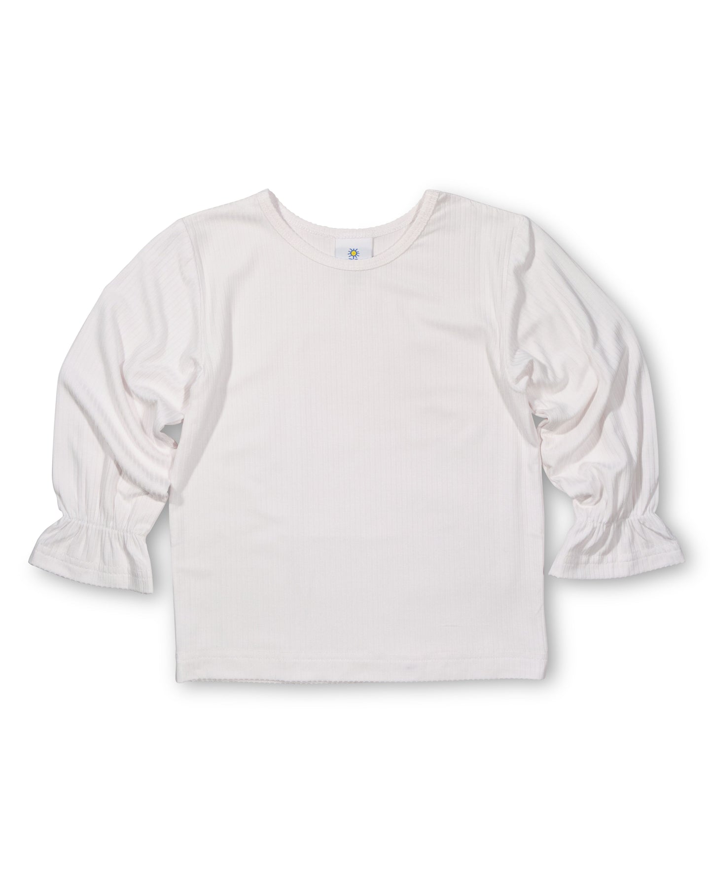 Regular price $52.00A layering essential with a touch of charm. This white rib knit shirt features delicate lettuce-edge finishing and a classic neck binding for a polished look. Crafted from a soft viscose blend with gentle stretch, it's perfect for pairing under jumpers, dresses, or wearing on its own.