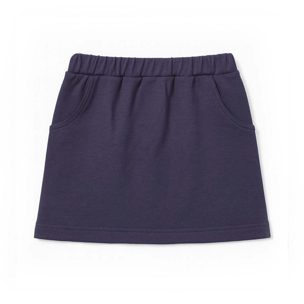 Regular price $52.00Play all day in this comfy French terry skort, designed for movement and ease. Made from soft navy cotton with a hint of stretch, it features hidden jersey knit shorts, handy pockets, and an above-the-knee length—perfect for school days and weekend adventures.