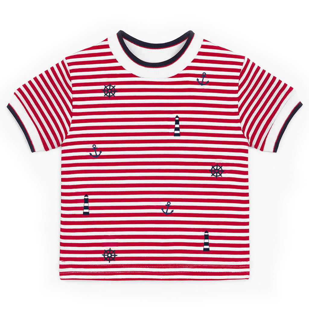 Stripe Knit Tshirt With Nautical Embroidery