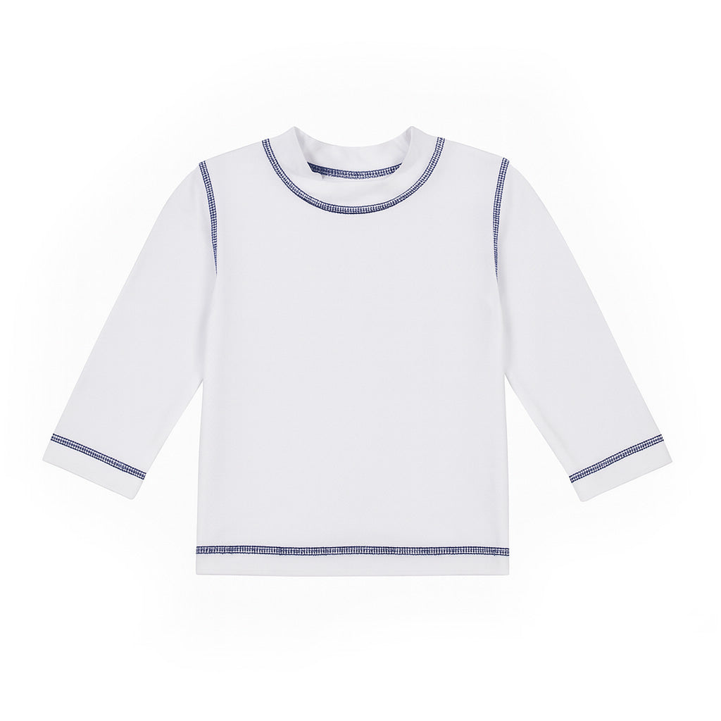 White Long Sleeve Rashguard With Navy Stitching