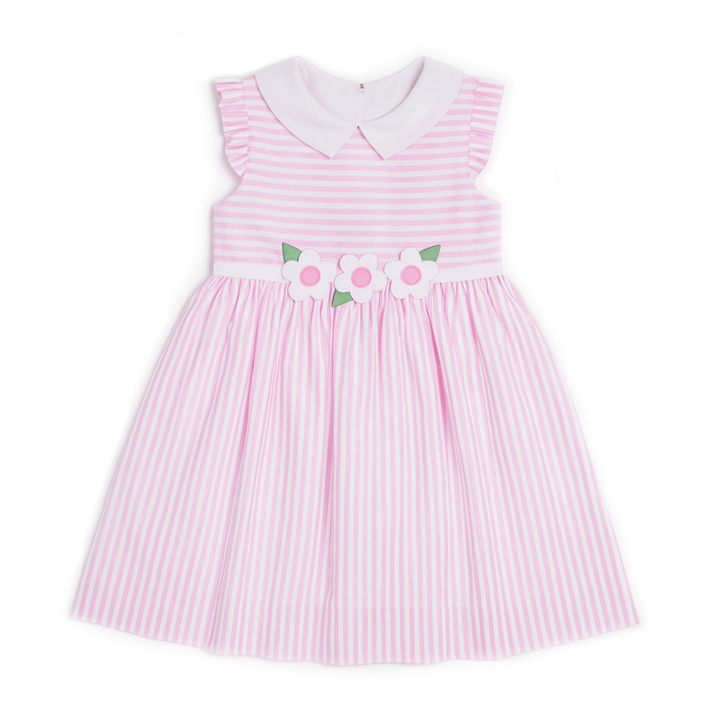 Linen Look Stripe Dress With Flowers
