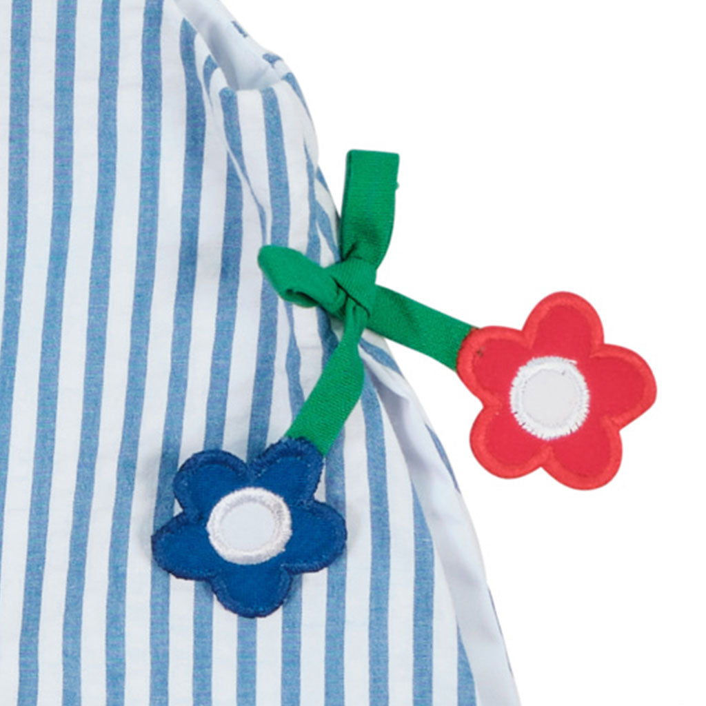 Regular price $108.00Perfect for warm-weather days, this two-piece set is crafted from royal and white stripe seersucker in soft 100% cotton. Appliqué flowers bloom along the side seams of the tunic-length dress, while open sides and delicate spaghetti ties add a sweet, airy touch.