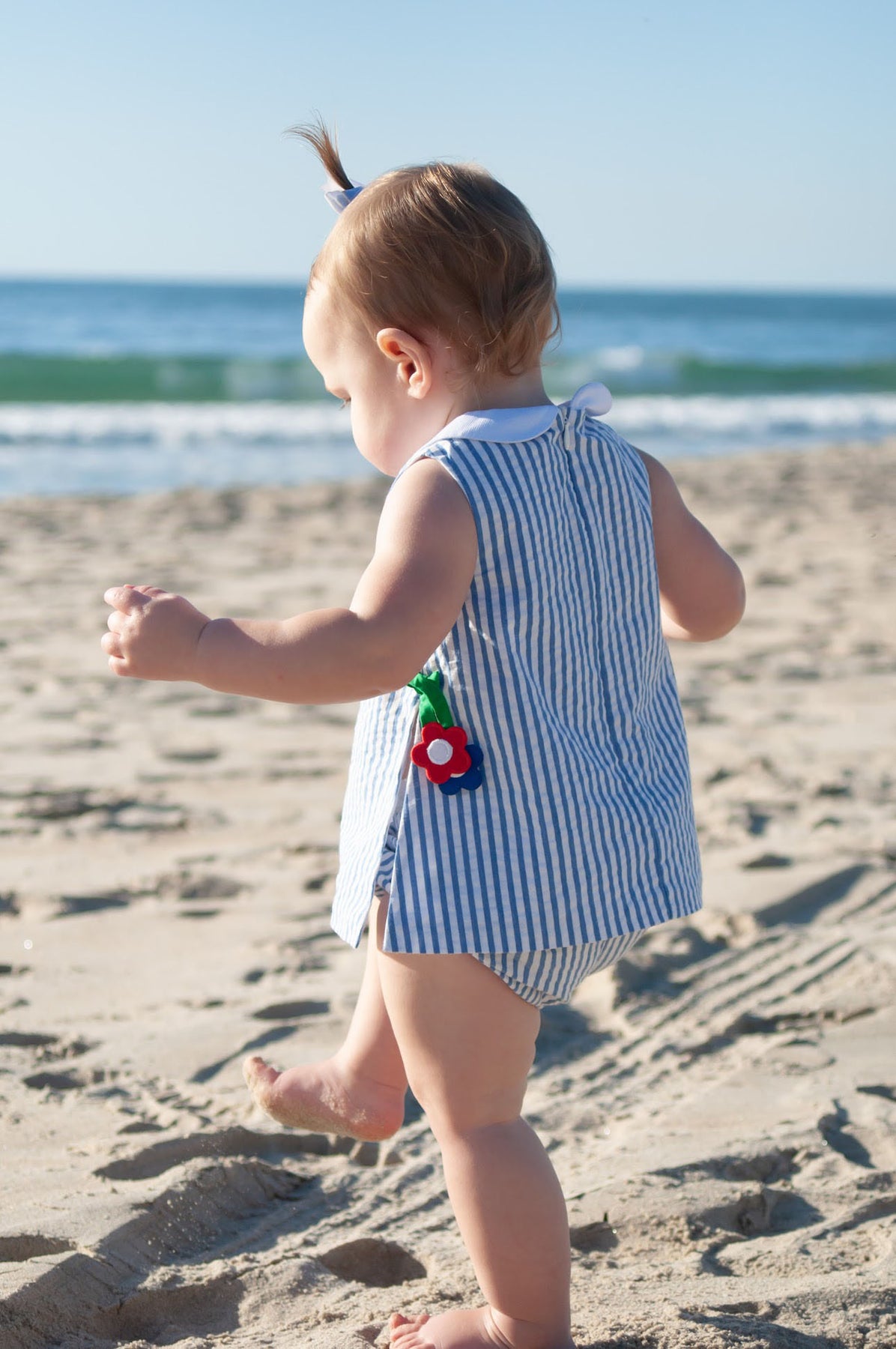 A matching bloomer with elastic at the waist and legs ensures comfort and easy movement, and a back zipper makes dressing simple. Ideal for sunny outings, family vacations, and spring celebrations.