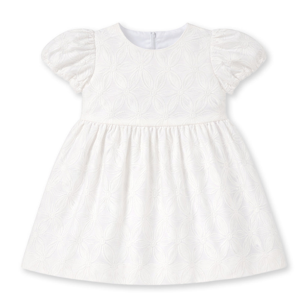 Regular price $132.00Fresh and feminine, this dress is crafted from crisp white poplin embroidered with delicate floral details for a timeless, warm-weather look. Soft bubble sleeves add a touch of volume, while the waist dress silhouette with a shirred skirt creates graceful movement that feels perfect for sunny days away.
