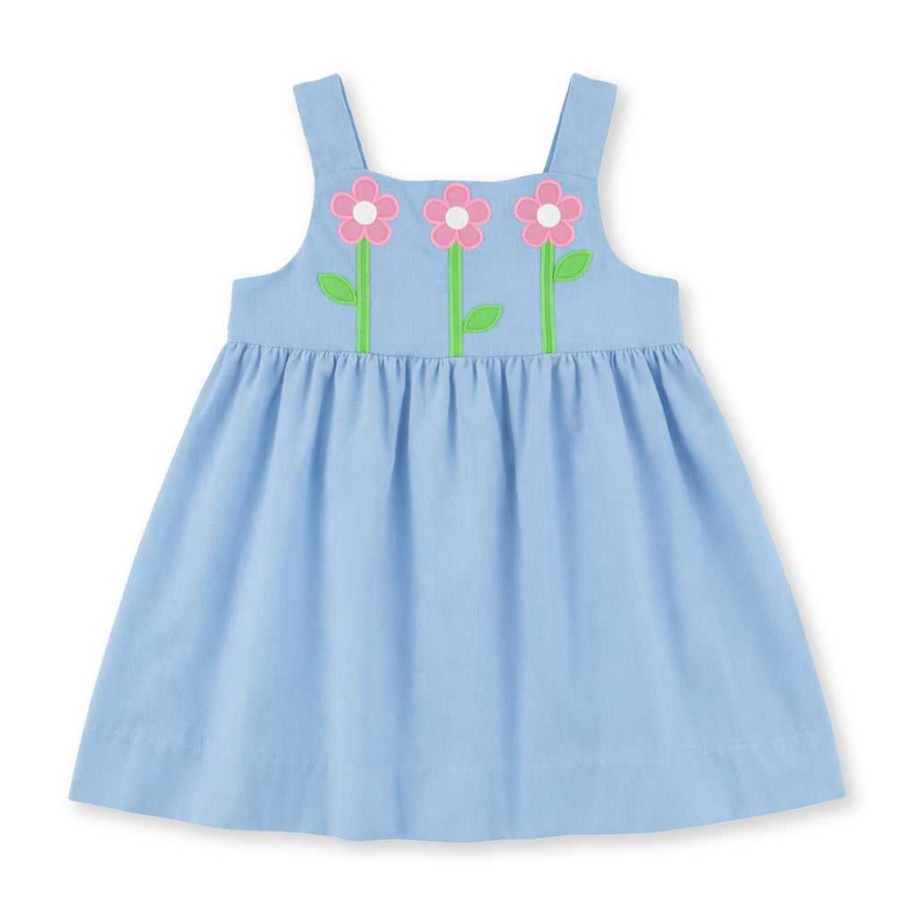 Our personalization team will make the best choice for each size and style. For the cardigans, embroidery is placed in the upper left side of the chest of the garment. For dresses, embroidery is centered on teh bib.
