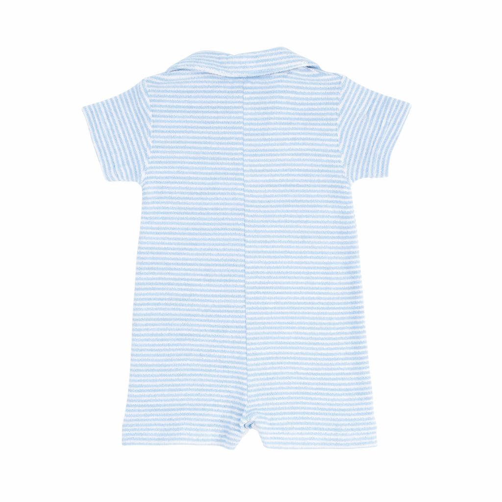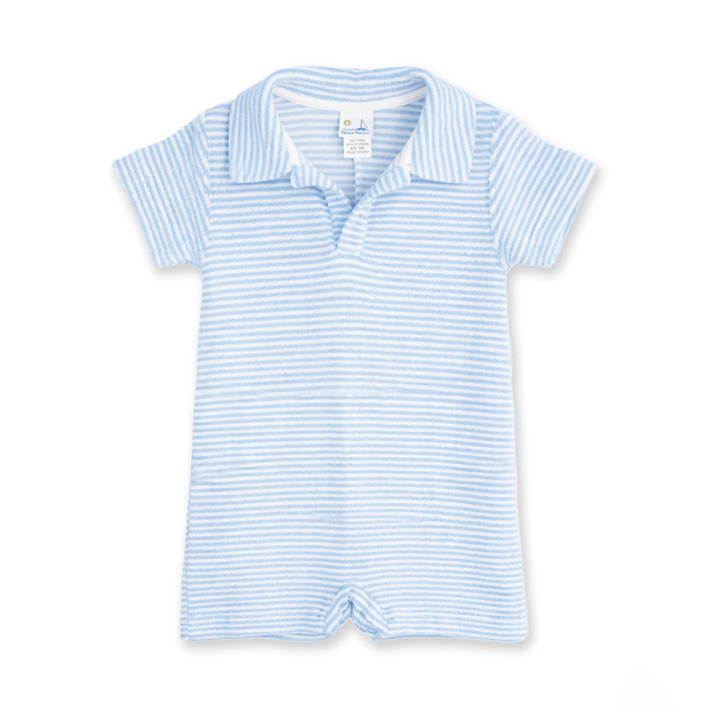 Regular price $84.00Easy and effortlessly cool, this shortall is crafted from soft blue and white stripe terry cloth that’s perfect for slipping on over a swimsuit. A classic polo collar adds a polished, sporty touch, while the absorbent terry fabric makes it ideal for post-swim comfort.