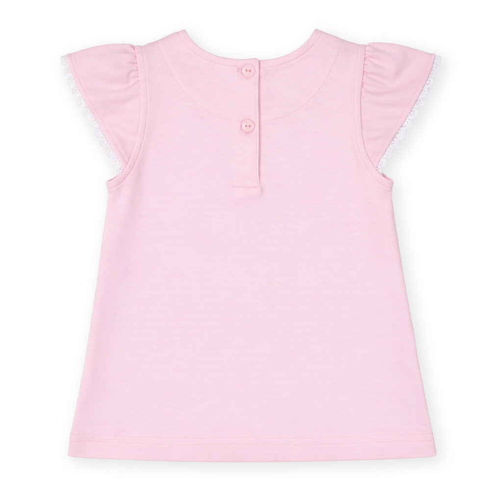 Regular price $64.00Sweet and sunny, this pink interlock knit top is crafted from soft 100% cotton for cool, all-day comfort. Appliqué flowers bloom across the front chest, adding cheerful color and playful charm.