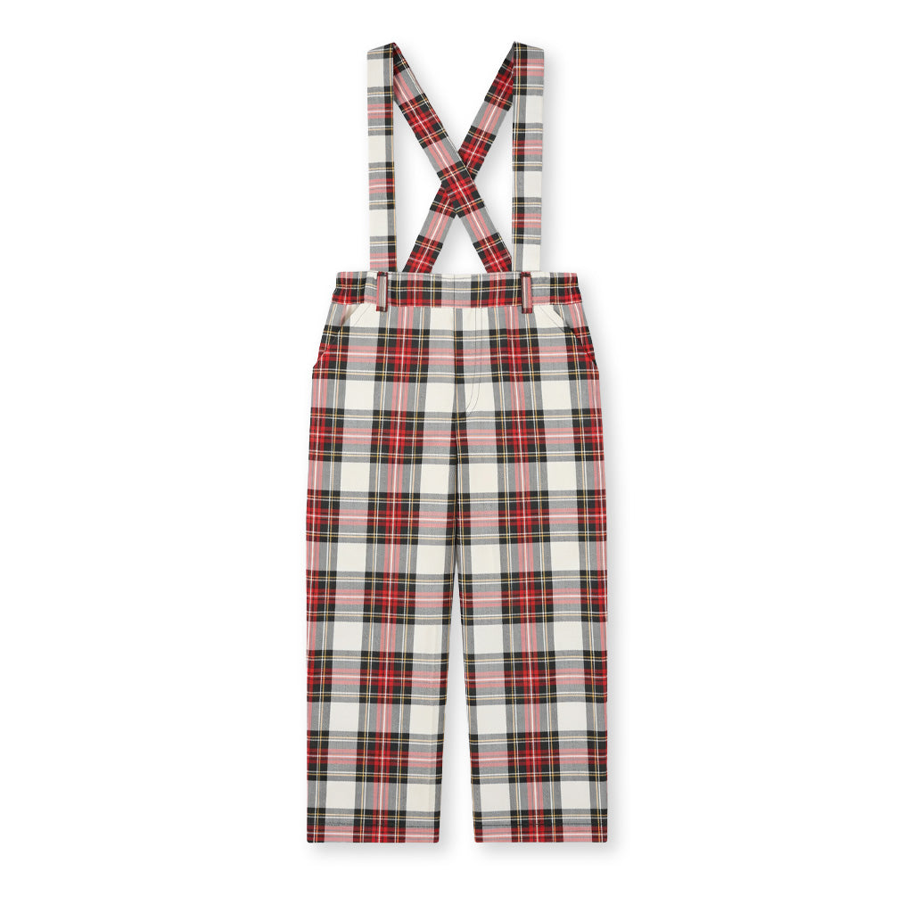 Regular price $116.00 Sale price $87.00Festive and versatile, these pants are tailored in a classic white, red, and black plaid—perfect for seasonal portraits and holiday gatherings. Removable suspenders give the option of a polished, traditional look or a more casual style, making them a wardrobe favorite.