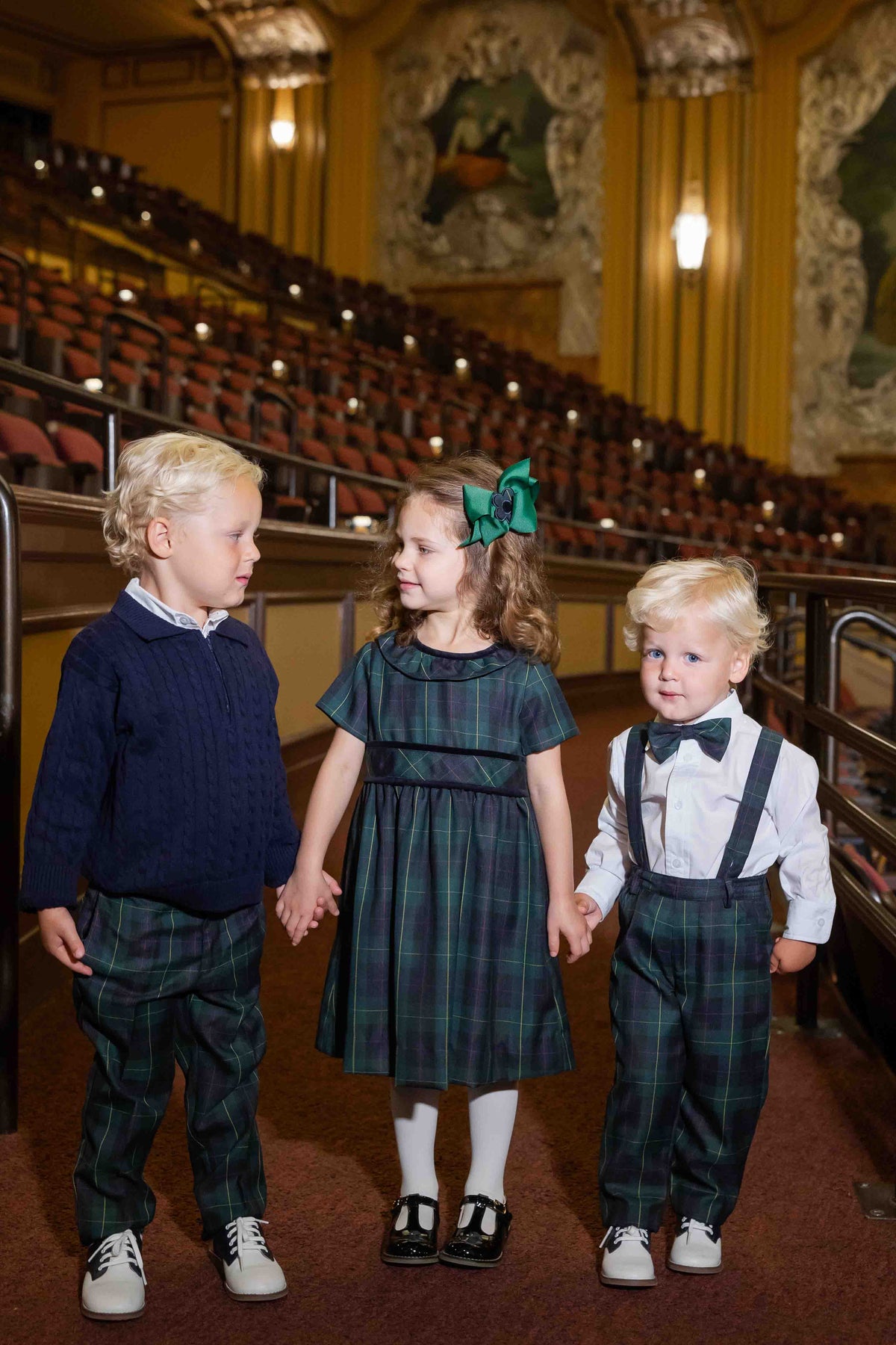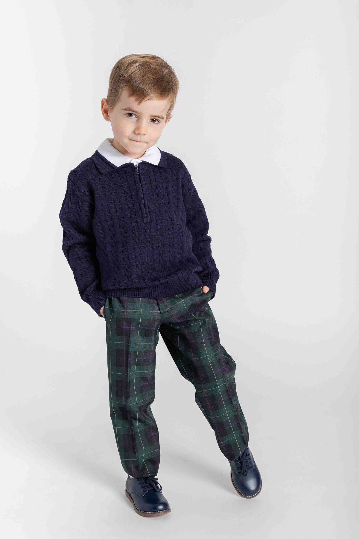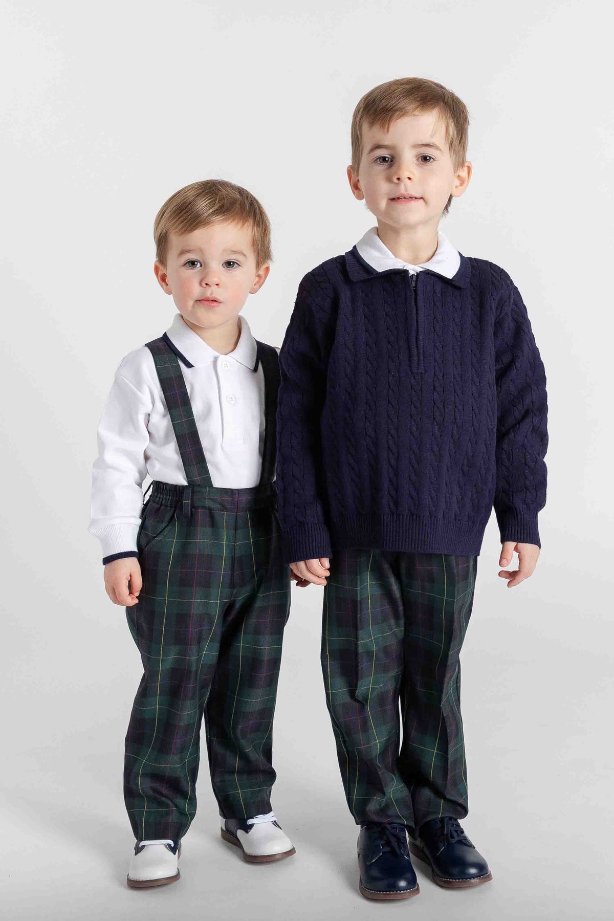 Tailored for timeless style, these pants are crafted in a rich green and navy plaid that captures the spirit of the season. A front fly zipper with a hook-and-eye closure keeps the fit polished, while an adjustable elastic waistband ensures comfort that grows with him.
