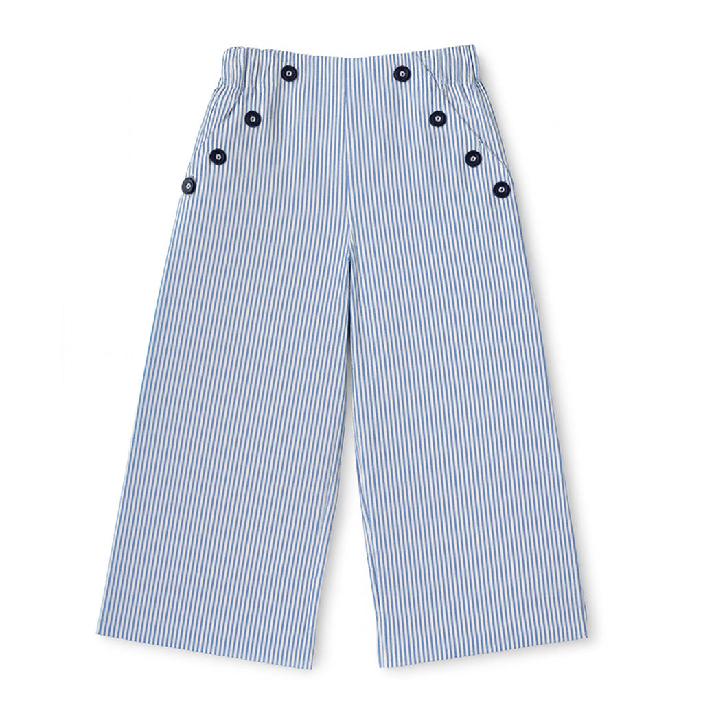 Regular price $92.00Crisp and classic, these blue and white stripe woven oxford pants bring a nautical nod to any outfit. A sailor-inspired front waist detail with buttons adds polished charm, while the back waist elastic ensures a comfortable fit.