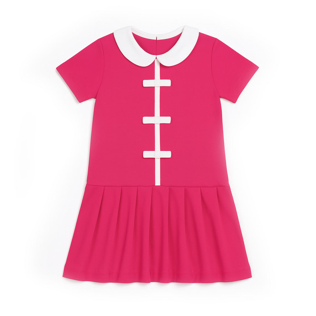 Knit Dress With Pleated Skirt And Bows