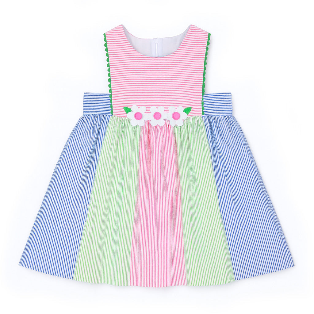 Stripe Seersucker Dress With Flowers