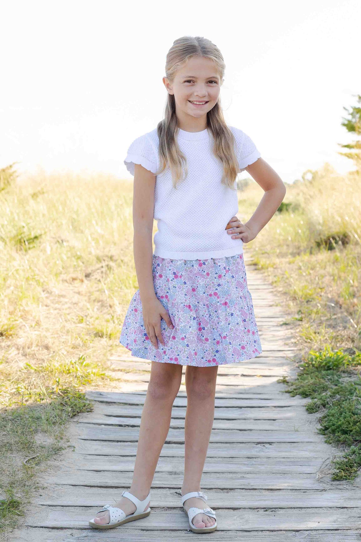 Designed with cap sleeves and a comfortable crew neckline, it’s an easy layer for spring days—perfect for pairing with skirts, shorts, or dressy pants for special occasions and everyday wear alike.