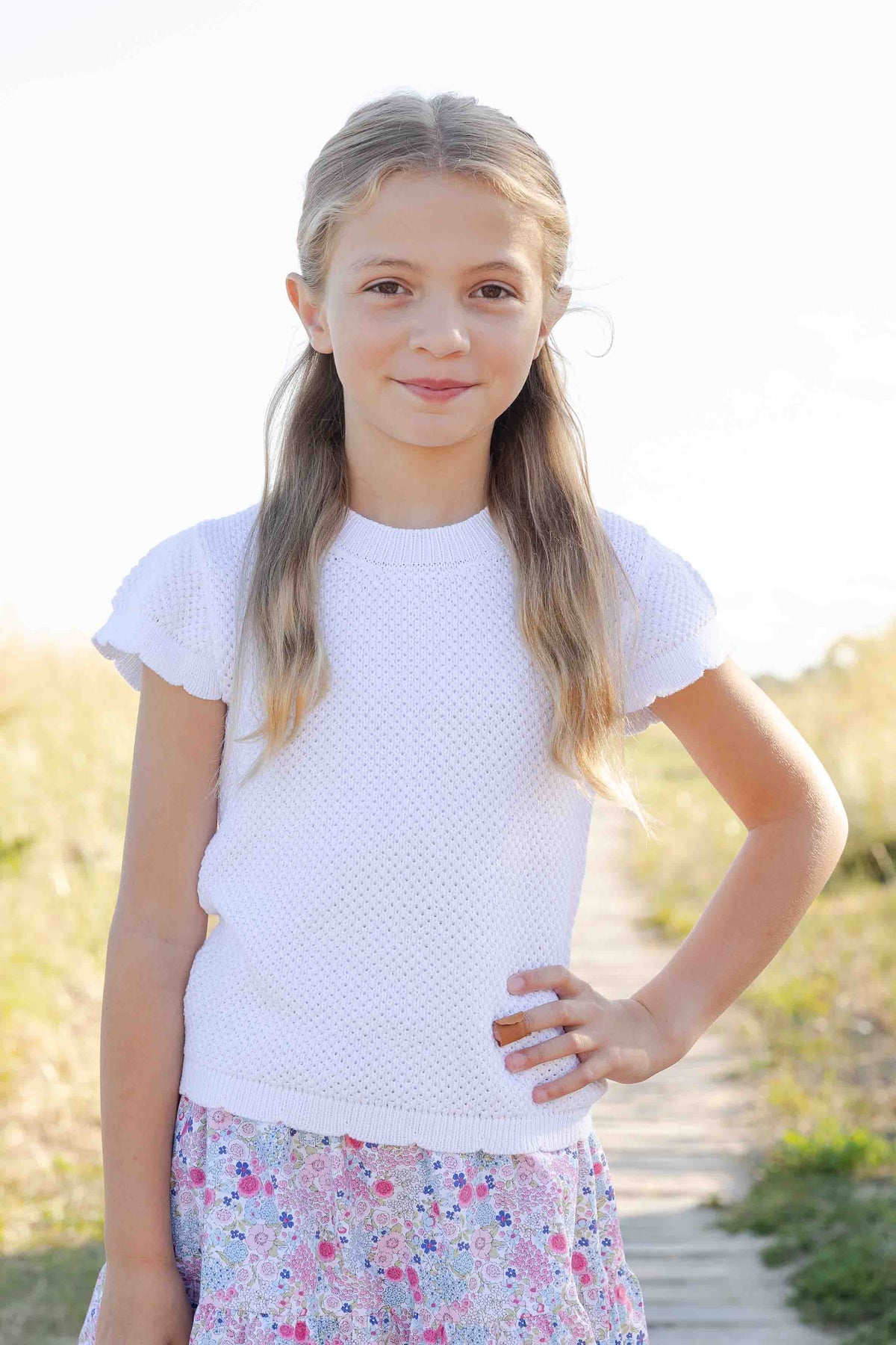 Regular price $88.00Classic with a soft, feminine touch, this short sleeve sweater is knit from 100% cotton in crisp white for a fresh, polished look. A textured knit adds subtle dimension, while scalloped edges at the sleeves and hem bring a delicate, heirloom-inspired finish.