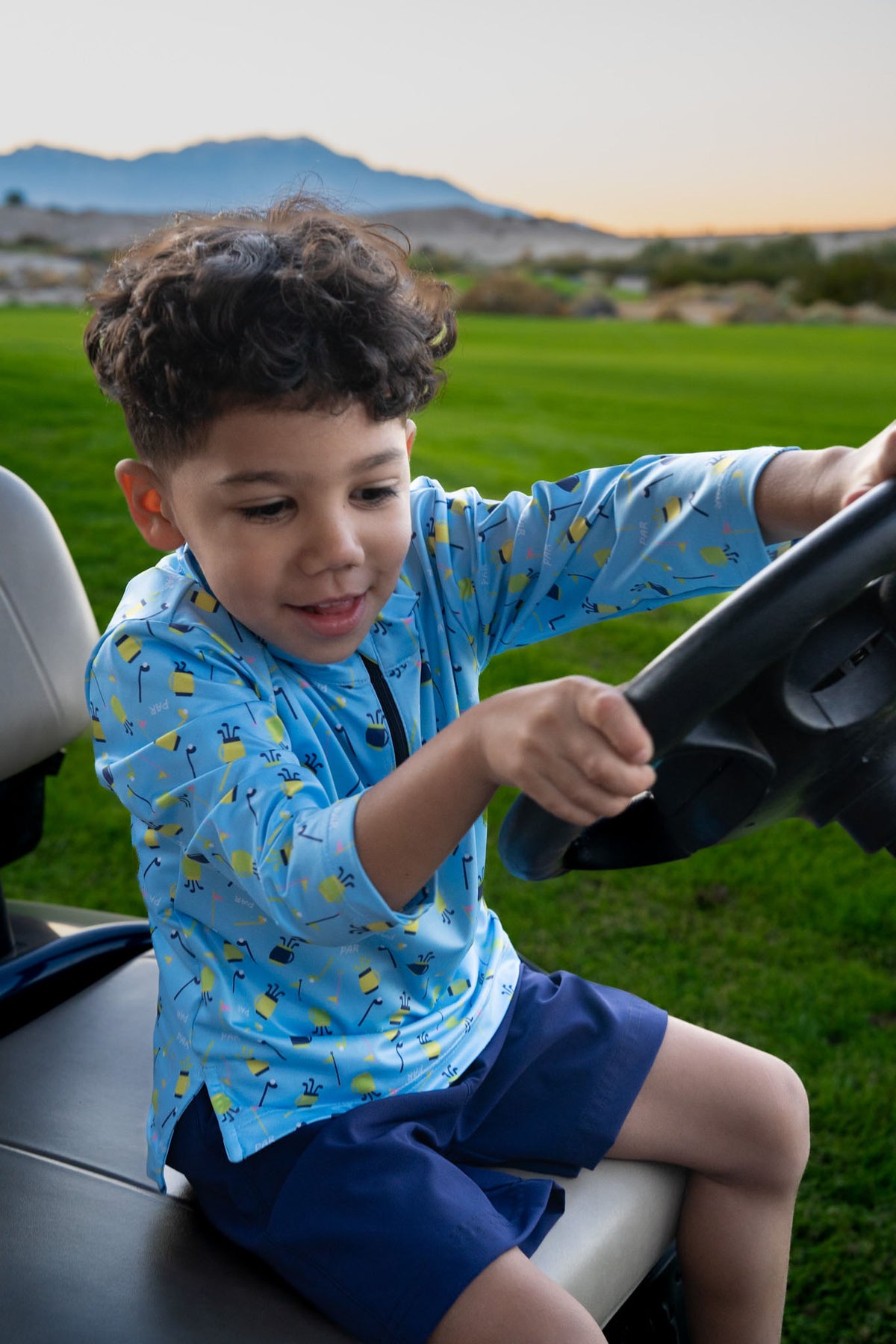 - Blue golf print performance knit