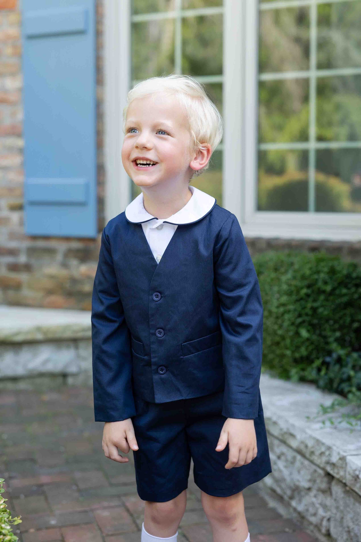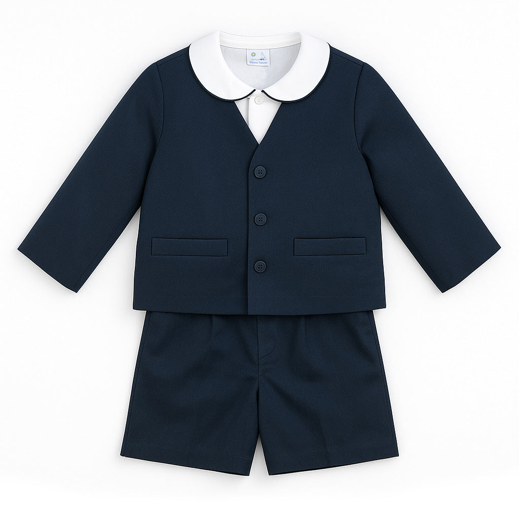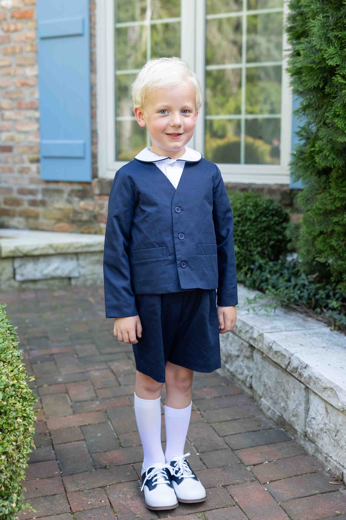 Navy Pique Jacket and Short with Woven Short Sleeve Shirt
