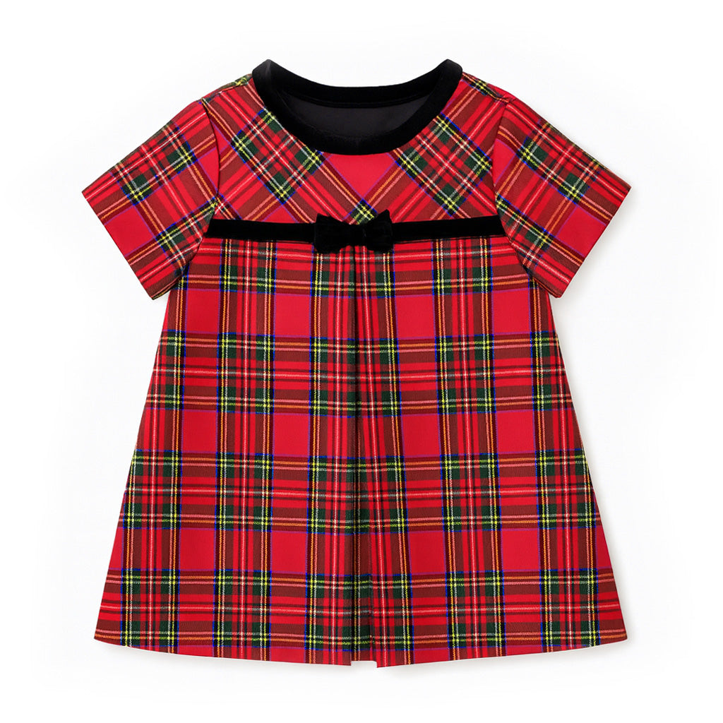 Tartan Plaid Dress With Pleat And Bow