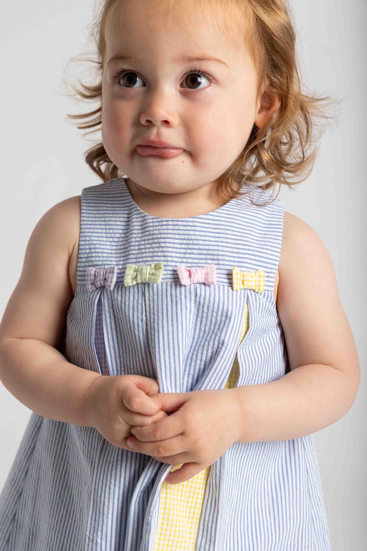 - Mulitcolor check seersucker pleats and bows