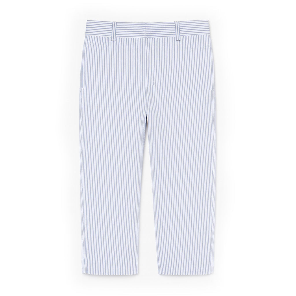 Regular price $78.00 Sale price $58.50Our blue and white stripe seersucker pant is designed for those special summer occasions. Inside adjustable waist elastic allows for a custom fit. This year's narrower leg makes this classic pant trend ready.