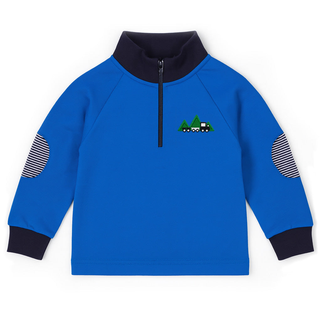 A half-zip at the front makes dressing easy while giving it a polished, athletic look. Made from a cotton-spandex blend, it offers gentle stretch for comfort that lasts through school days, playdates, and picture-worthy moments.