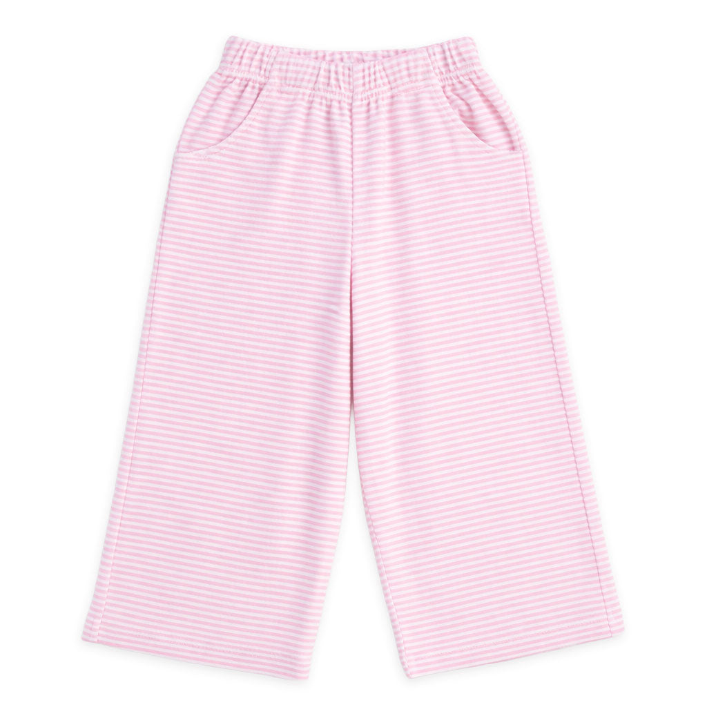 Easy, comfortable, and effortlessly stylish, these wide leg pants are crafted from soft pink and white stripe terry cloth—perfect for slipping on over a swimsuit or wearing throughout the day. The relaxed silhouette offers breezy movement, while front pockets and an elastic waistband add everyday practicality.