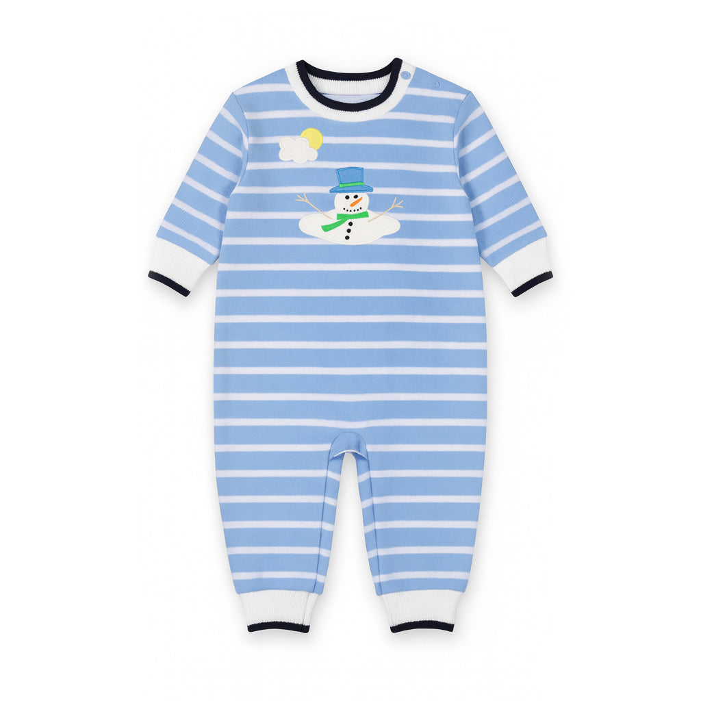 Regular price $92.00Full of wintry whimsy, this longall is crafted from navy and white yarn-dyed stripe pique knit in soft 100% cotton. A playful appliqué snowman melting in the sun decorates the chest, bringing a cheerful twist to a seasonal classic.
