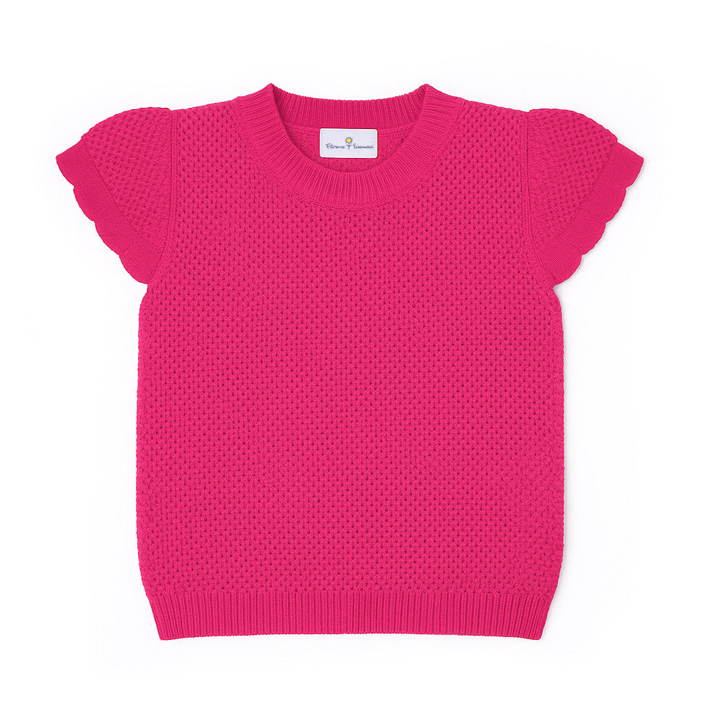 Bright and sweet, this fuchsia short sleeve sweater is crafted from soft 100% cotton with a delicate textured knit. Cap sleeves and scalloped edges add charming, feminine detail that feels just right for warm-weather days.