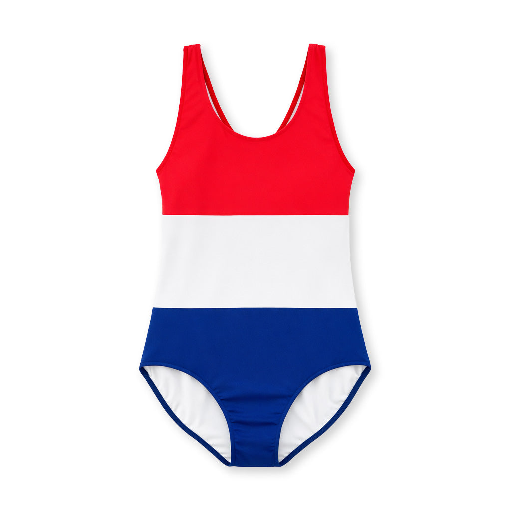 Red, White and Navy Color Block Y-back Tank Swimsuit