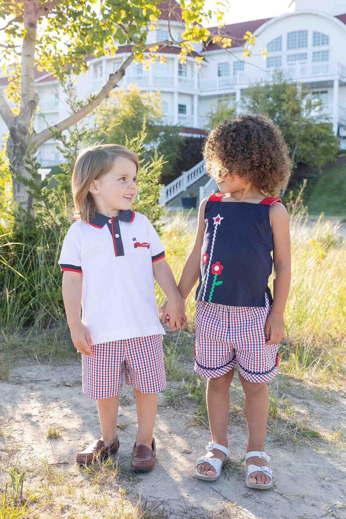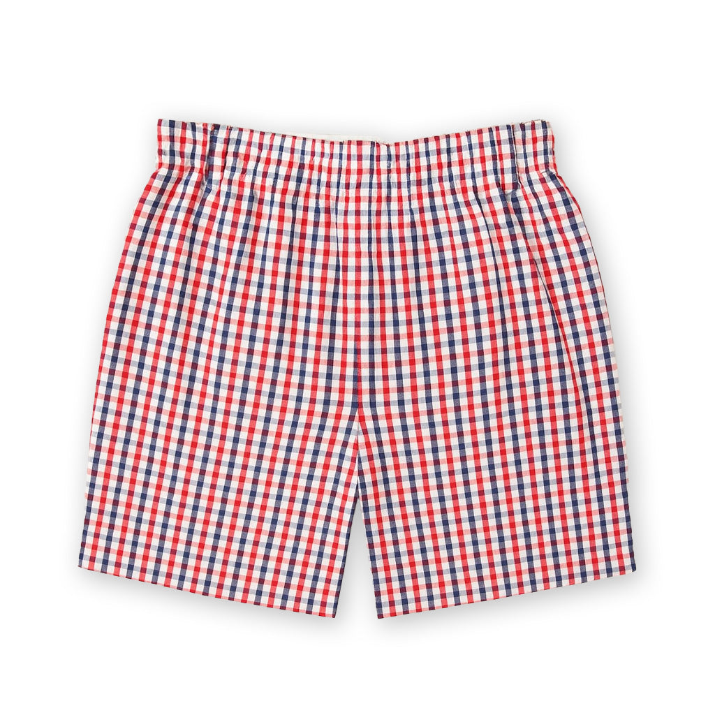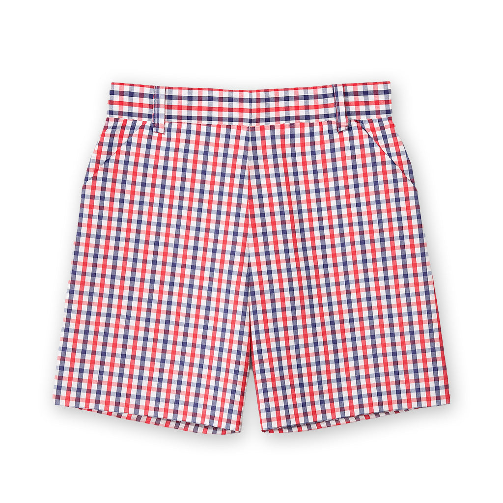 Regular price $76.00A warm-weather essential with timeless appeal, these shorts are crafted from red, navy, and white plaid seersucker in soft, breathable 100% cotton. Designed with front slant pockets, belt loops, and a neat fake fly, they offer a polished look with the ease of a pull-on style.